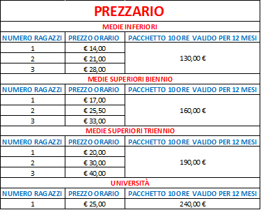 Oltre al costo delle singole lezioni ricordiamo che per ogni iscrizione sarà obbligatorio versare la somma di 1,00€ che avrà validità dal giorno di iscrizione fino al 31 dicembre dell’anno in corso.